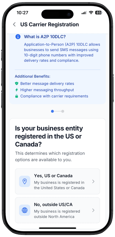 If you’re planning to text customers in the U.S., you may also need to complete 10DLC registration. 10DLC (10-digit long code) is the carrier-approved system for business messaging, designed to reduce spam and improve trust. Registering your business and messaging purpose helps your texts deliver more reliably, lowers the chances of being blocked, and keeps your communications compliant with mobile carrier rules. Your business phone system should guide you through this process.