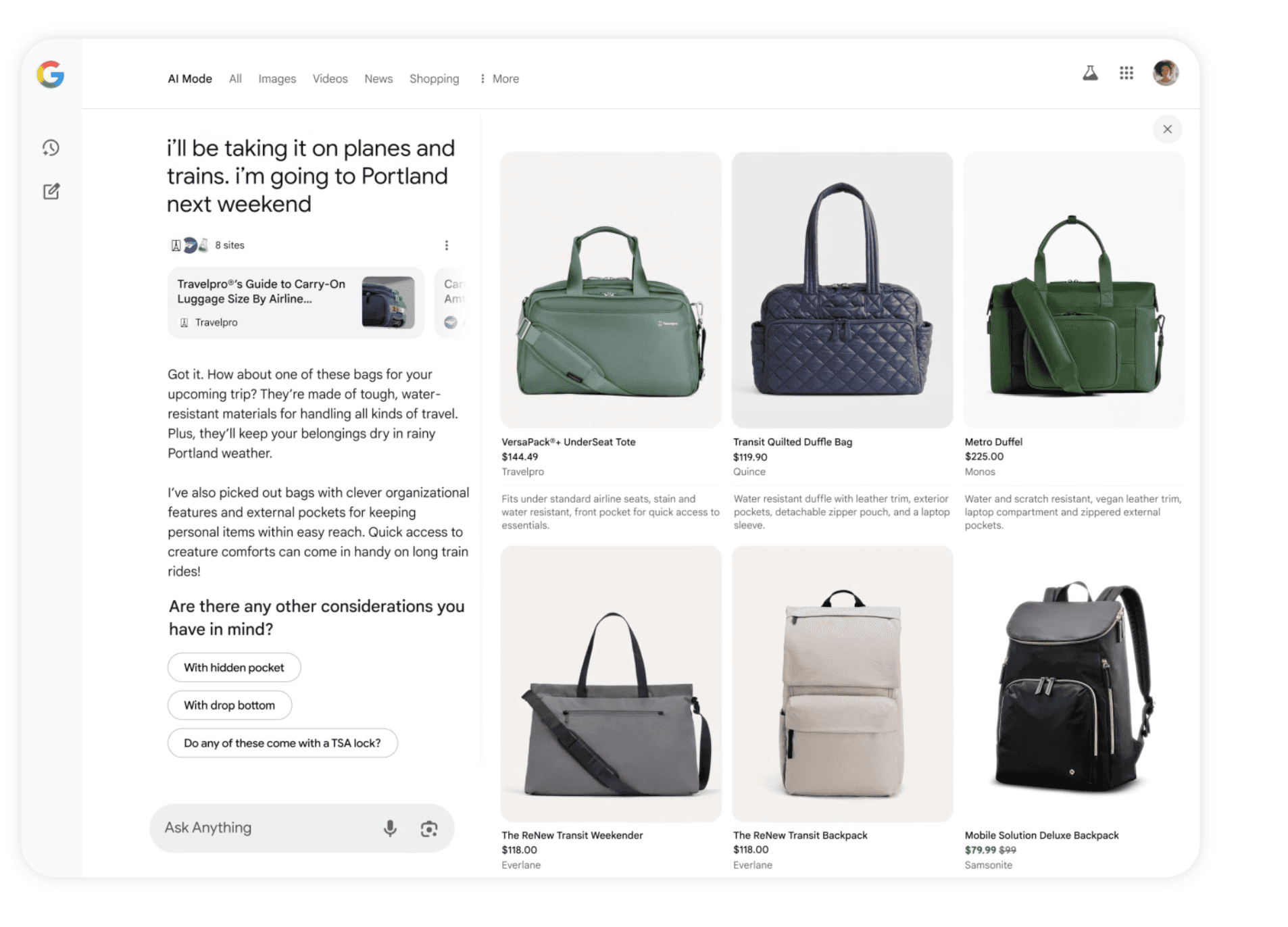Google’s AI Shopping Mode brings AI-driven recommendations, virtual try-ons, and smarter checkout flows to the shopping experience.