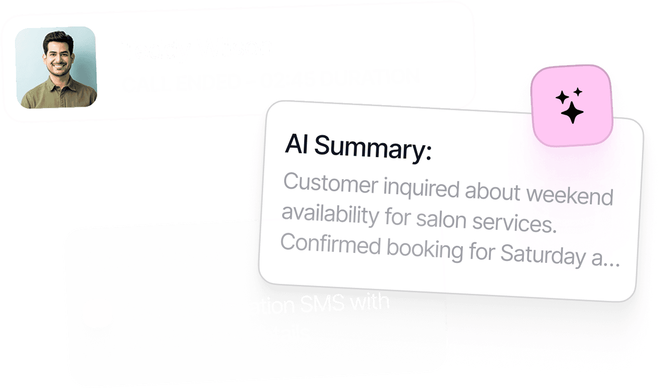 “Customer inquired about weekend availability for salon services. Confirmed booking for Saturday at 2 PM. Requested haircut and color treatment.”